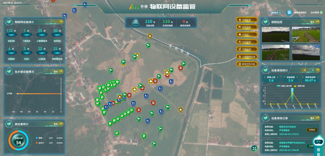 據介紹,新建的農業氣象站依托移動物聯網卡,可以24小時不間斷將溫度、濕度、風速、雨量等數據回傳至云端。25套土壤墑情儀和22套稻田土壤水位監測儀深入根系,通過移動NB-IoT網絡,實時傳回土壤水分、溫度、水位深度等關鍵信息。同時,20套高清苗情監測設備定時捕捉水稻生長畫面,通過移動5G高速網絡將圖像回傳,實時監測地里苗情。5臺智能蟲情測報燈自動完成蟲情誘集、拍照、識別與上傳,助力病蟲害精準防控。